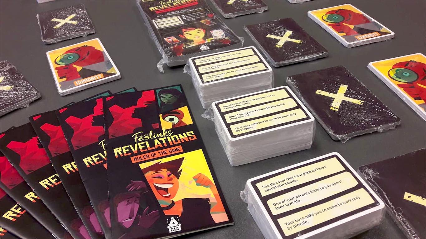 Allez hop ! Au lit les enfants, ce soir, c’est une soirée entre adultes ! Feelinks Revelations est la suite du jeu Feelinks et il a bien grandi. Nouveau design, format différent, identité plus moderne, couleurs plus soutenues… Cette fois, c’est bien un jeu pour les plus grands. On aurait même pu ajouter le logo PEGI 16+. Comme pour chaque jeu, nous avons travaillé sur de nombreux tests pour aboutir à ce packaging final. Maintenant, c’est à vous de jouer : ouvrez le coffret et découvrez à quel point vous vous connaissez.